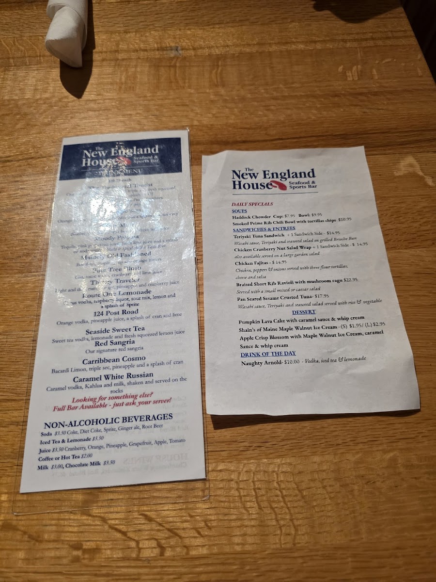 If you're in the mood for a laid-back spot to enjoy great food and a fun atmosphere, check out the The New England House Seafood & Sports Bar Menu. Located at 124 Post Rd in Wells, ME, this place has something for everyone, from fresh seafood to hearty comfort food, all served with a side of sports bar excitement. Whether you're grabbing a bite before the game or relaxing with friends, the menu offers a variety of options to suit any craving.