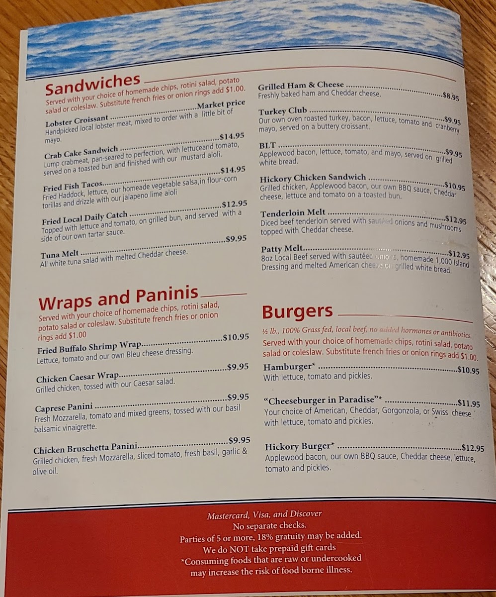 Start your meal with one of their famous seafood appetizers like crispy calamari or a fresh lobster roll. For the main course, you can't go wrong with their signature clam chowder, or if you're feeling adventurous, try one of their seafood platters that showcase the best of New England’s fresh catch. Of course, if you're craving something more classic, the burgers and wings hit the spot every time.